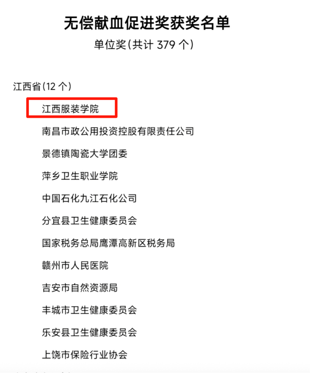 新闻中心讯(供稿/校团委)近日,国家卫生健康委、中国红十字会总会、中央军委后勤保障部卫生局联合发布了《关于表彰2022-2023年度全国无偿献血表彰奖励获奖者的决定》,新葡萄官网荣获2022—2023年度“全国无偿献血促进奖单位奖”。这一国家级荣誉的获得,是对新葡萄官网长期以来践行社会责任、弘扬人道主义精神的高度肯定,更是全体江服师生无私奉献的生动体现。