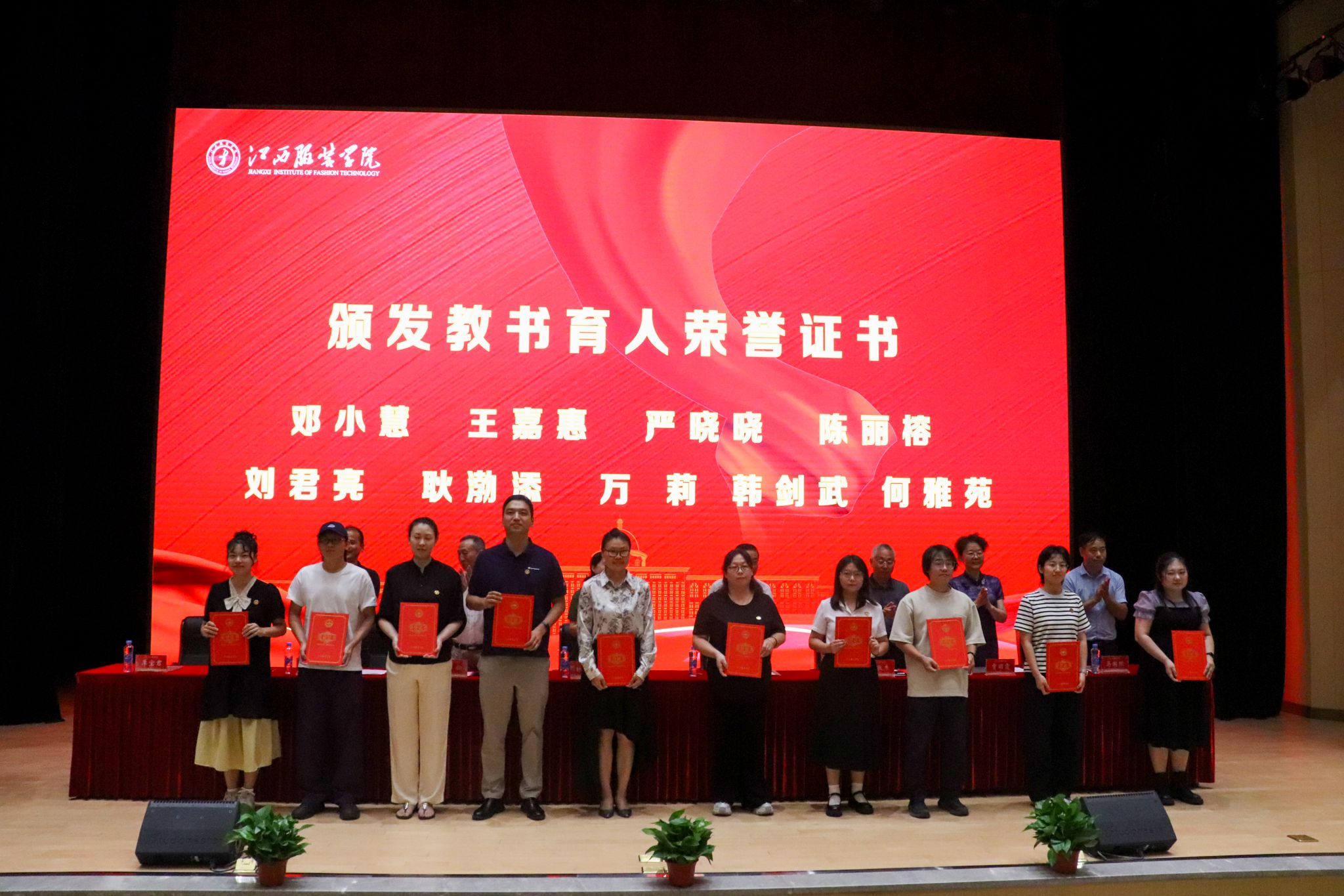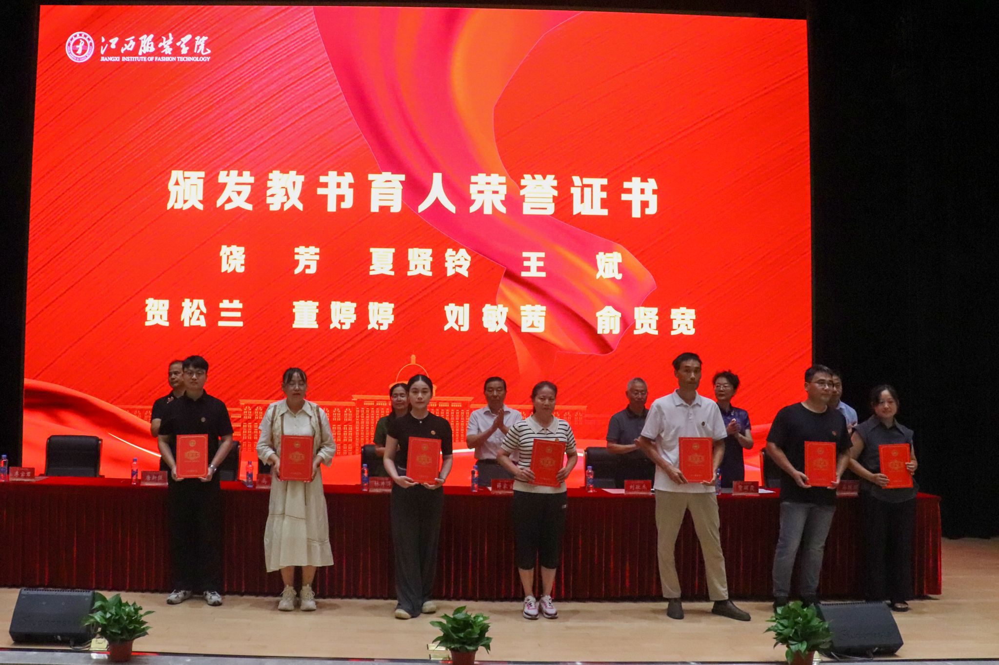 “教书育人”先进个人代表、服装工程学院章华霞教授深情分享了自己从教十九载的感悟。她表示,自己的成长离不开学校搭建的发展平台和政策支持,正是在江服这片沃土上,她从一名普通教师成长为国家级一流专业负责人。未来,她将继续秉持工匠精神,传承时尚薪火,用心用情培育更多高素质应用型人才。