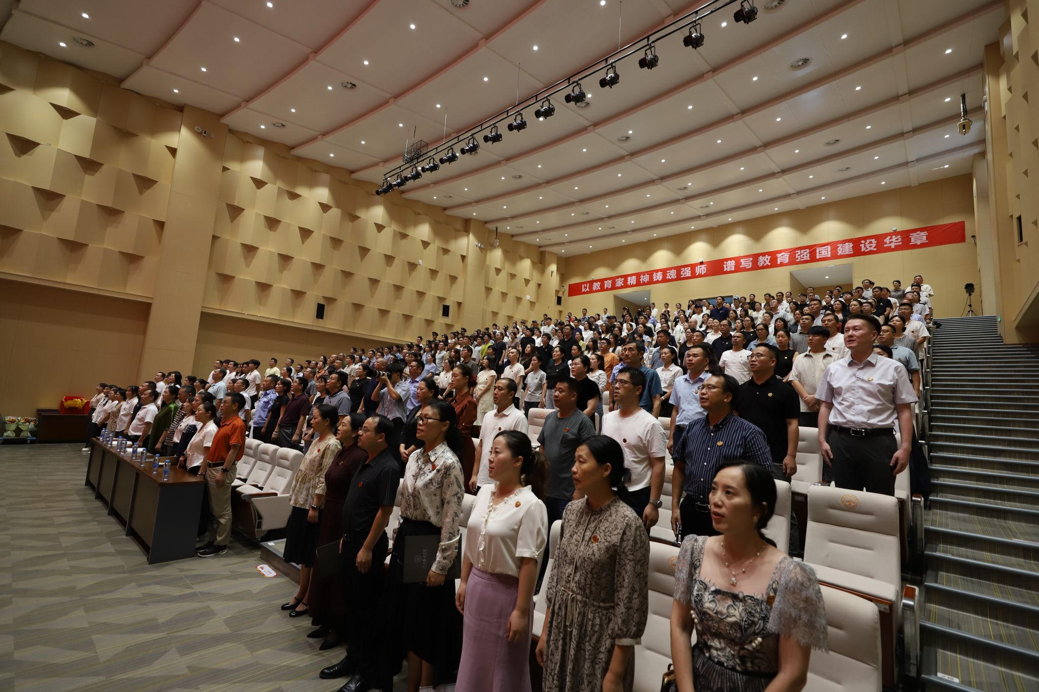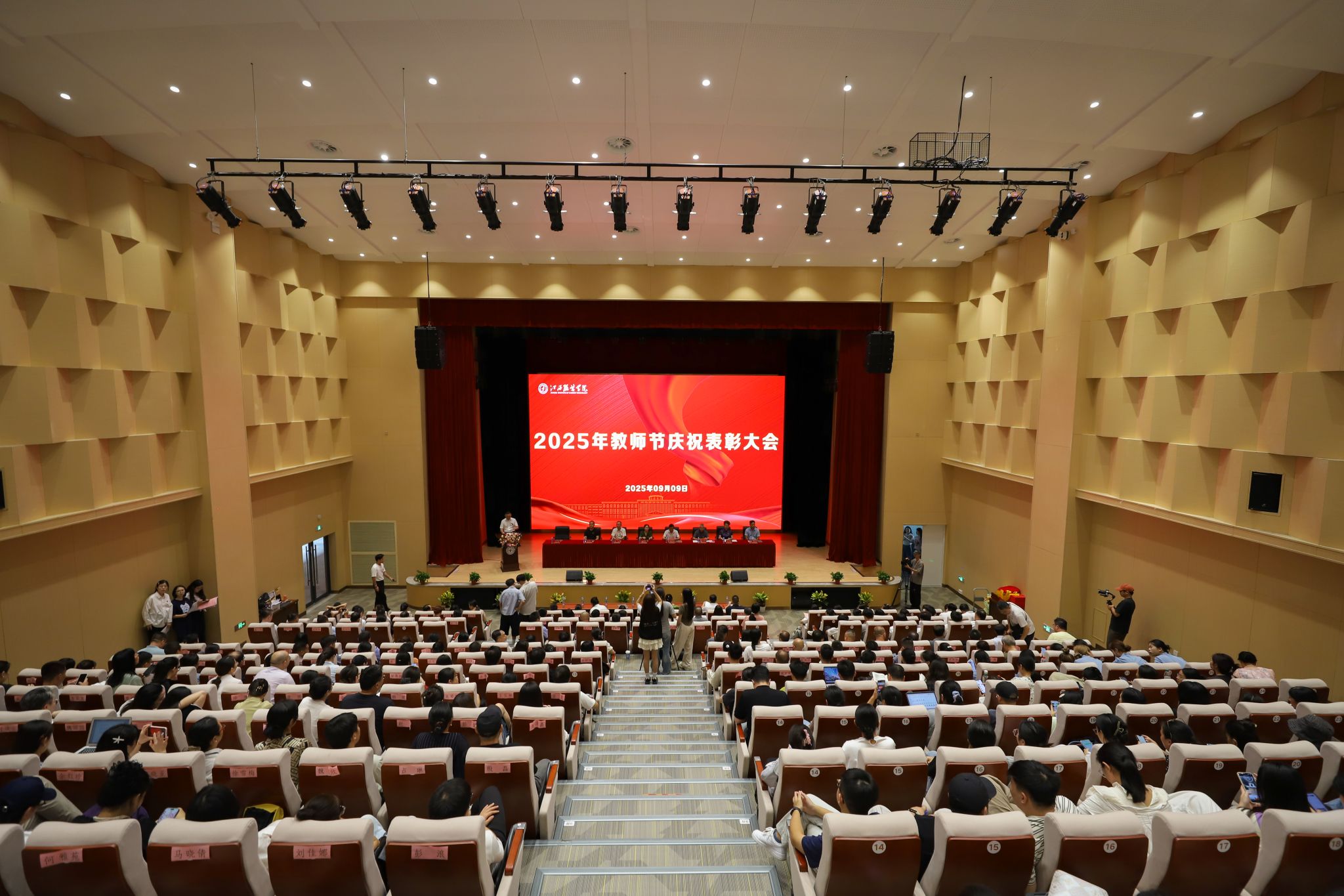 新闻中心讯(文/万强 图/申宇晨 张婷 钟鼓乐)秋华映初心,桃李颂师魂。在全国第41个教师节来临之际,新葡萄官网在体育馆多功能报告厅召开2025年教师节庆祝表彰大会。校党委书记林井萍、校长薛家宝等全体在家校领导出席大会,全体中层干部、教职工代表参加了大会。党委副书记、副校长李宝君主持会议。