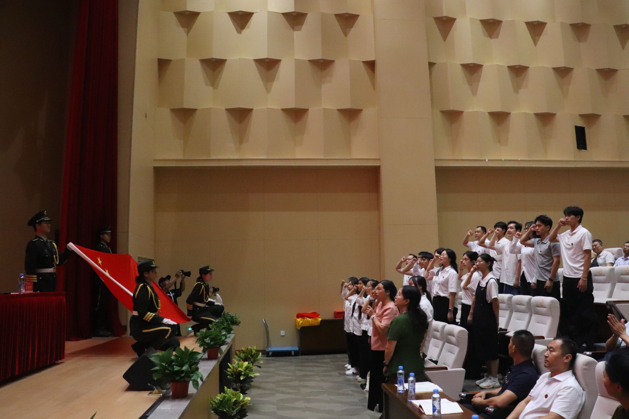 大会在庄严的国歌声中拉开序幕。
