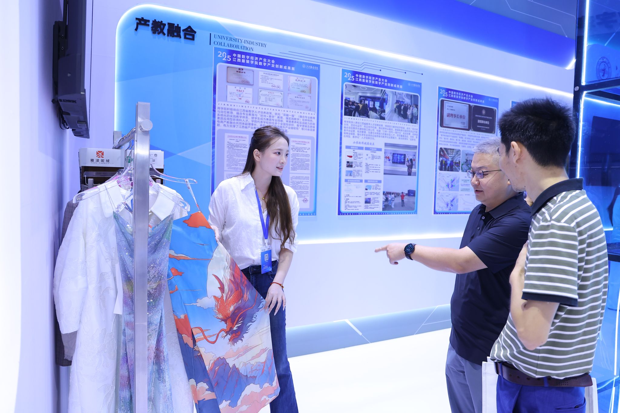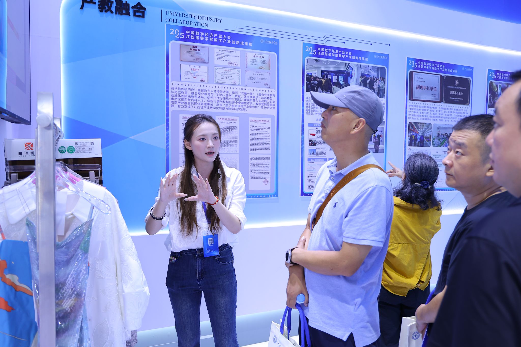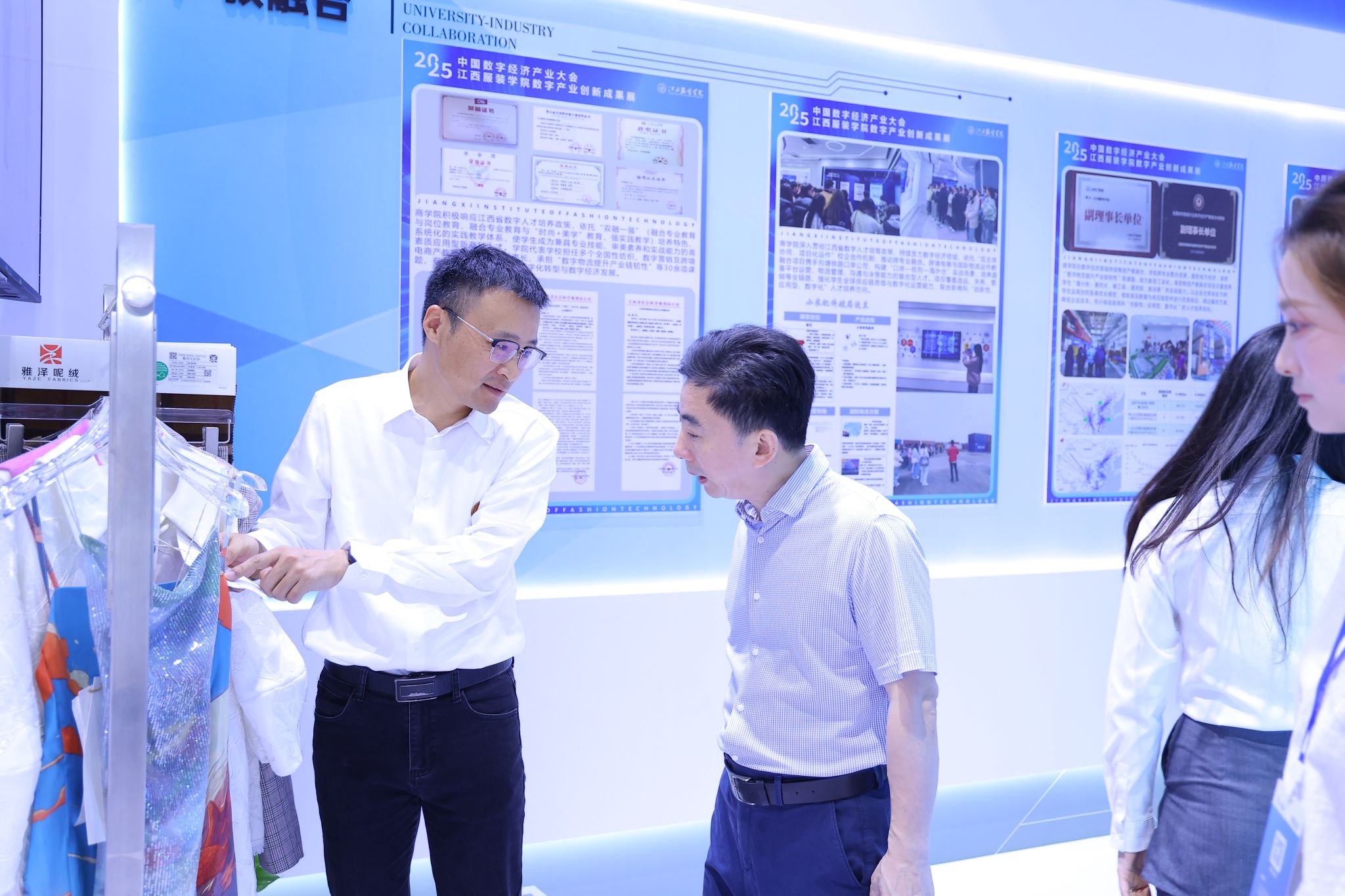 新闻中心讯(供稿/科技产业处 图片/徐志勇)在日前举办的2025中国(南昌)数字经济产业大会暨博览会上,新葡萄官网以“数字赋能纺织服装产业”为核心主题搭建专属展厅,系统呈现学校在数字化人才培养、产教融合、产业服务等领域的实践成果。本次展览由科技产业处、教务处与各学院联合承办,副校长刘孜杰、贾丽霞带队出席展会,与政企代表深度交流;师生代表共同参与展览,全方位彰显学校在推动纺织服装产业数字化转型中的积极作为。
