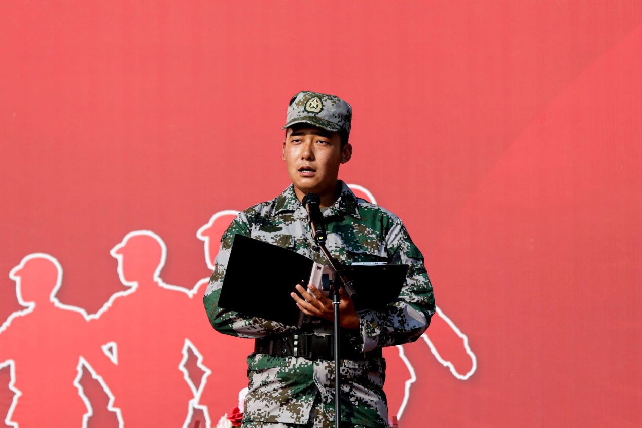 时尚传媒学院杨博雄代表全体教官发言。他承诺,全体教官将严格依据条令条例科学施训、循序渐进,同时像兄长般关心关爱每一位同学,做到文明带兵、不体罚不变相体罚,尊重学生人格。他希望同学们端正态度,把军训当作锤炼意志的宝贵机会,服从指挥、团结互助、挑战自我,在训练中注意安全,全力以赴完成各项任务。