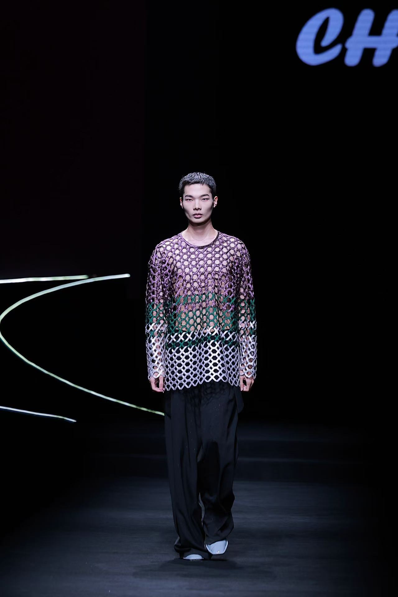 在发布会现场,CHEN.1988品牌本季作品展现出独特的设计语言。极具辨识度的轮廓线条成为品牌的核心表达,将建筑般的硬朗结构与流动的柔美线条巧妙融合。在刚与柔的对话中,品牌重塑了当代时装剪裁的边界。本季系列引入全新的设计视角,将充满活力的运动服装元素与精致时装语言相结合。通过对运动面料的机能感、线条分割的精准把控与现代时尚元素的融合,每一处细节都彰显着对工艺的坚持与对美的深刻理解。女装部分,利落的剪裁与飘逸的廓形相得益彰,在刚柔之间诠释着现代女性的多面魅力。