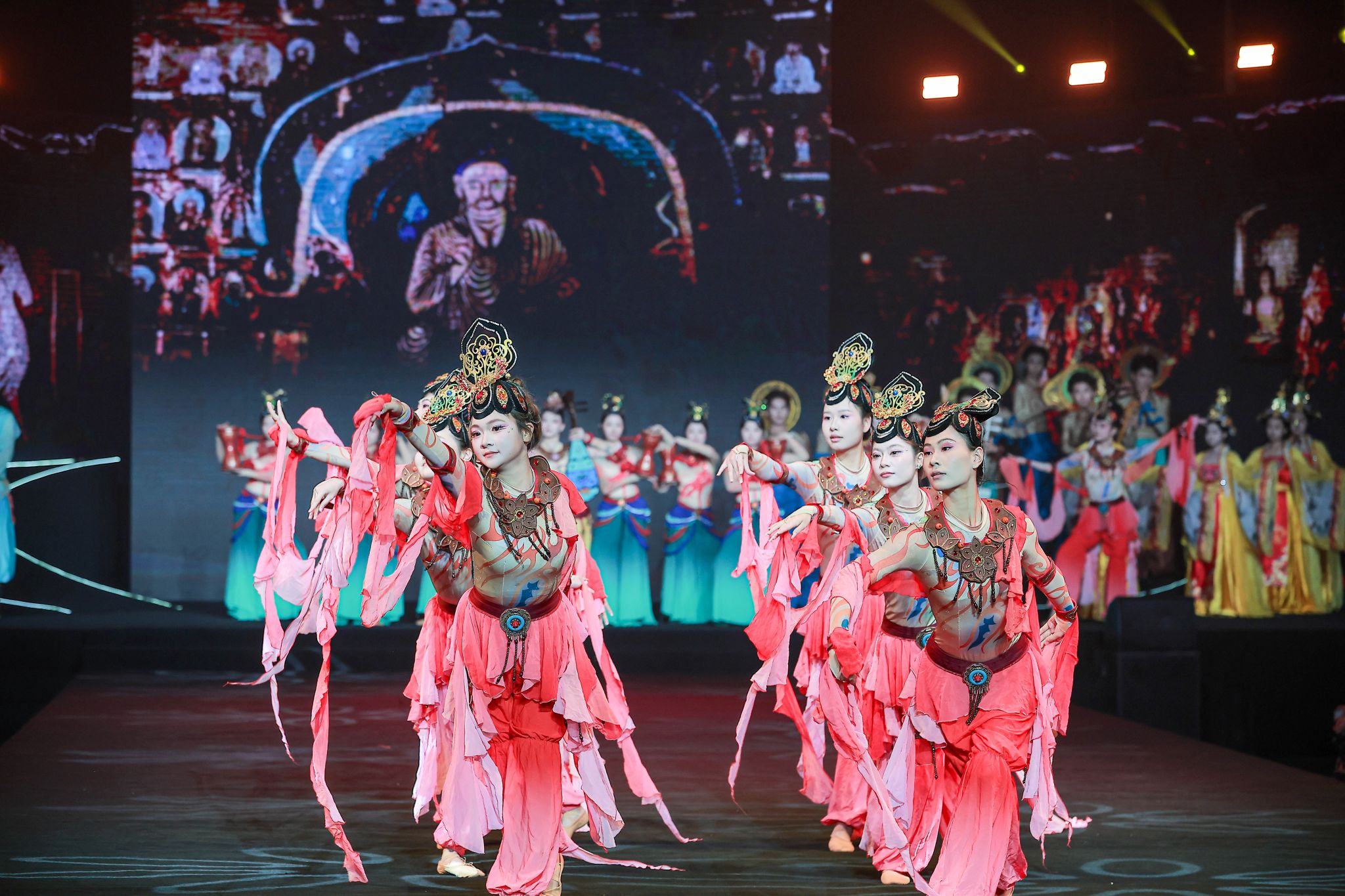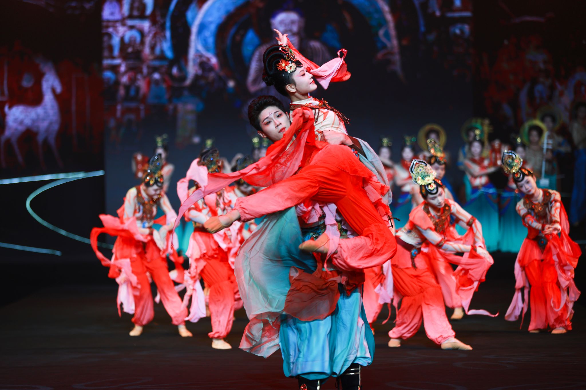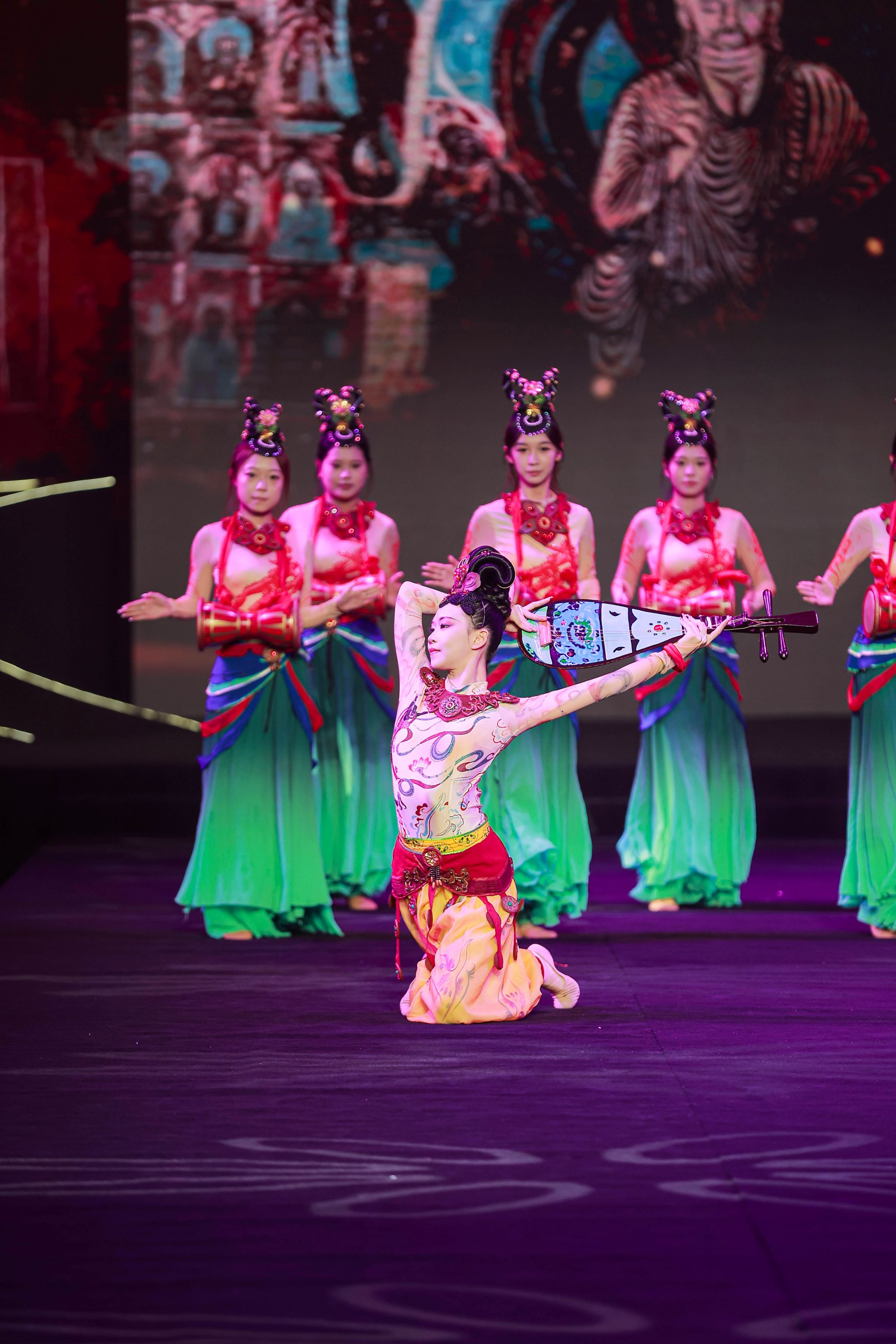 一曲穿越时空的旋律,邀您共赴一场跨越千年的艺术盛宴。感受历史的厚重与文化的韵味。舞者们以富于韵律的肢体语言,生动演绎了古丝绸之路上不同文明的交流与碰撞,再现了那段驼铃悠扬、商旅不绝的辉煌历史,象征着中华服饰文化在交流互鉴中不断丰富的开放品格。
