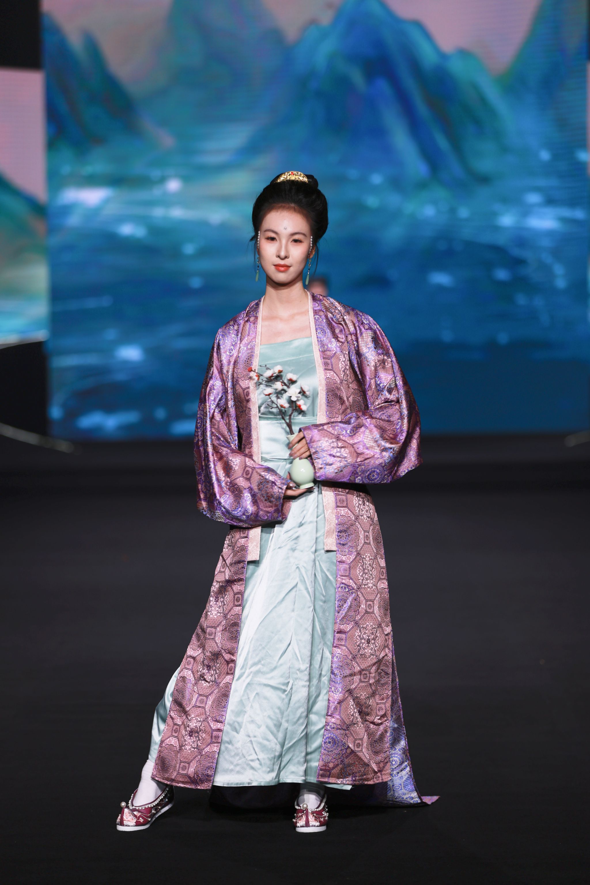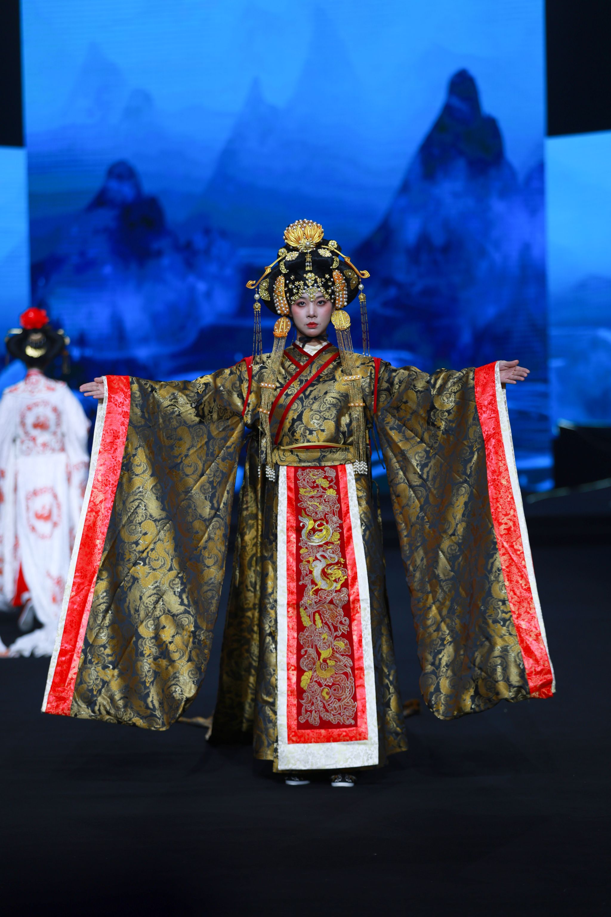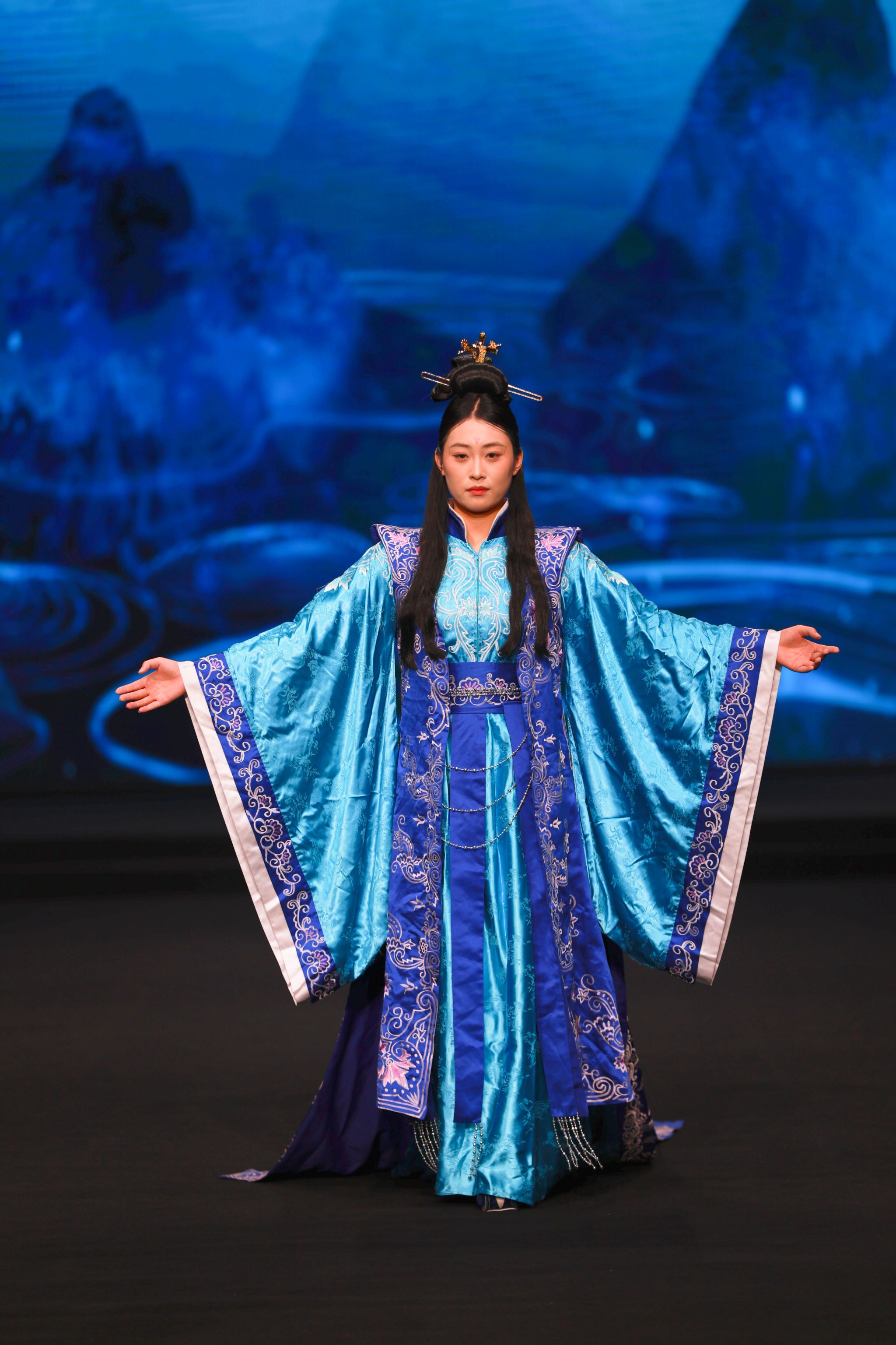 新闻中心讯(文/丁晗艺)秀美华夏,锦衣华裳 中华服饰,源远流长。2025年10月20日晚,由8455新葡萄娱乐场官网版全新升级的大型原创音乐舞台剧《服装赋》在霓裳宫震撼上演,作为2025国际时尚艺术节的重磅大秀之一,为全场观众带来一场跨越千年的视听盛宴。这场以时光为经纬、以服饰为符号的舞台剧,不仅诠释了中华服饰文化的博大精深,更展现了江服人致力于传统文化创造性转化与创新性发展的不懈追求。