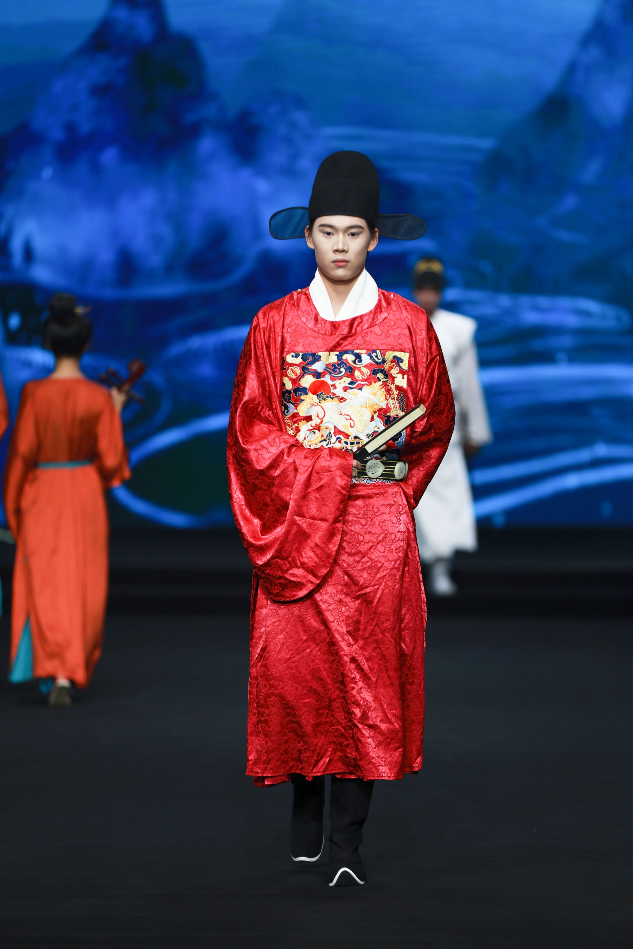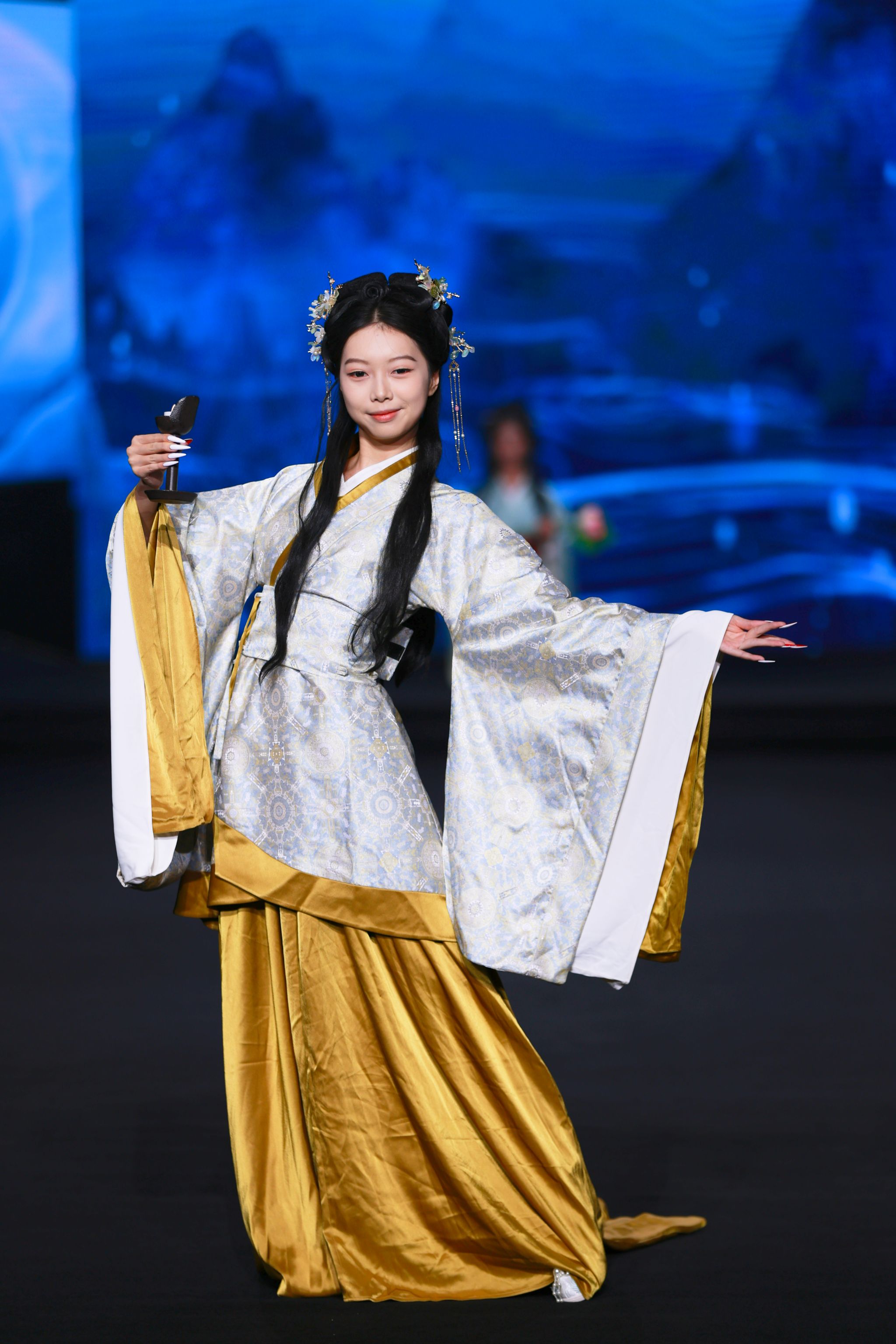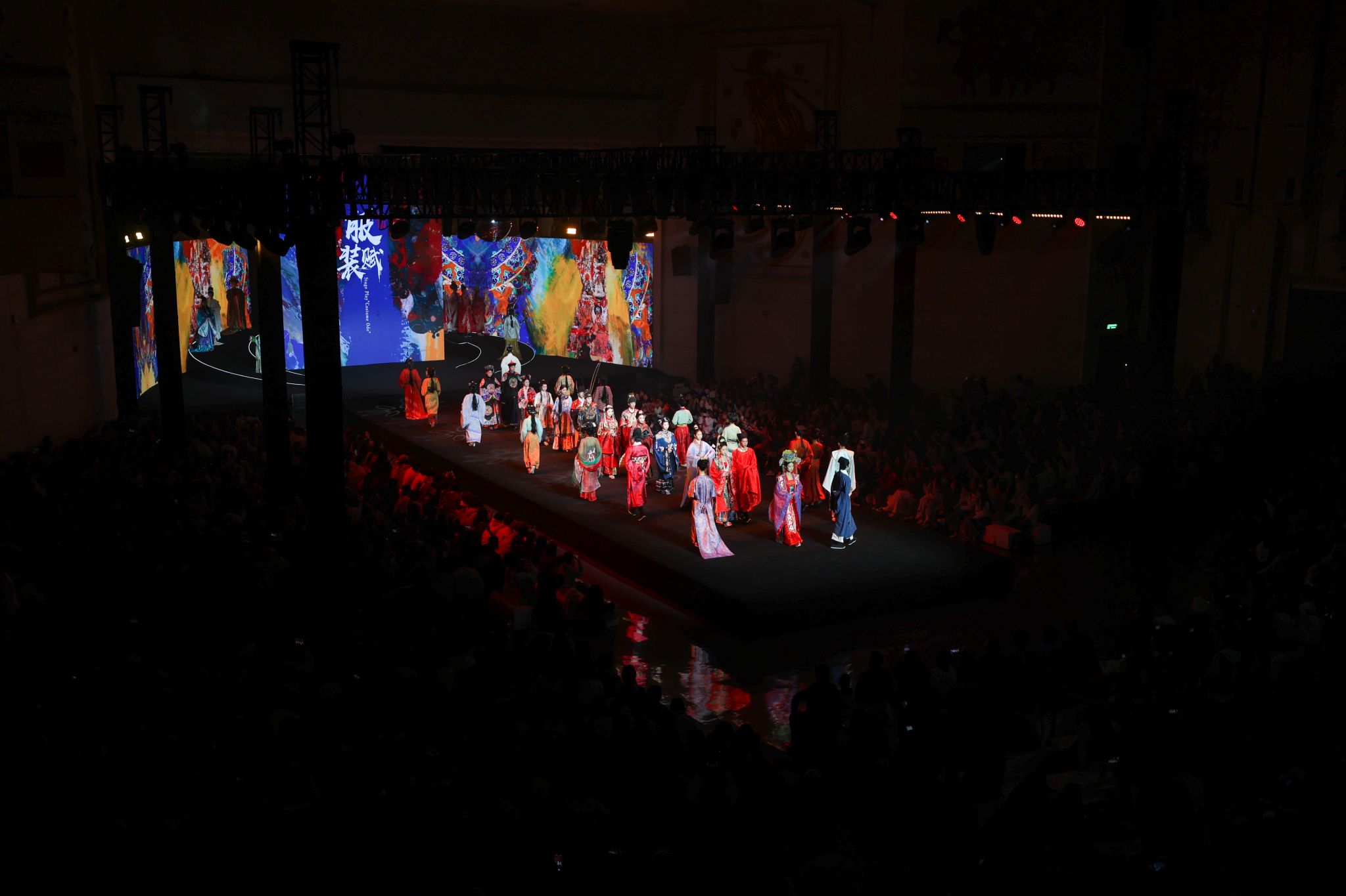 新闻中心讯(文/丁晗艺)秀美华夏,锦衣华裳 中华服饰,源远流长。2025年10月20日晚,由8455新葡萄娱乐场官网版全新升级的大型原创音乐舞台剧《服装赋》在霓裳宫震撼上演,作为2025国际时尚艺术节的重磅大秀之一,为全场观众带来一场跨越千年的视听盛宴。这场以时光为经纬、以服饰为符号的舞台剧,不仅诠释了中华服饰文化的博大精深,更展现了江服人致力于传统文化创造性转化与创新性发展的不懈追求。