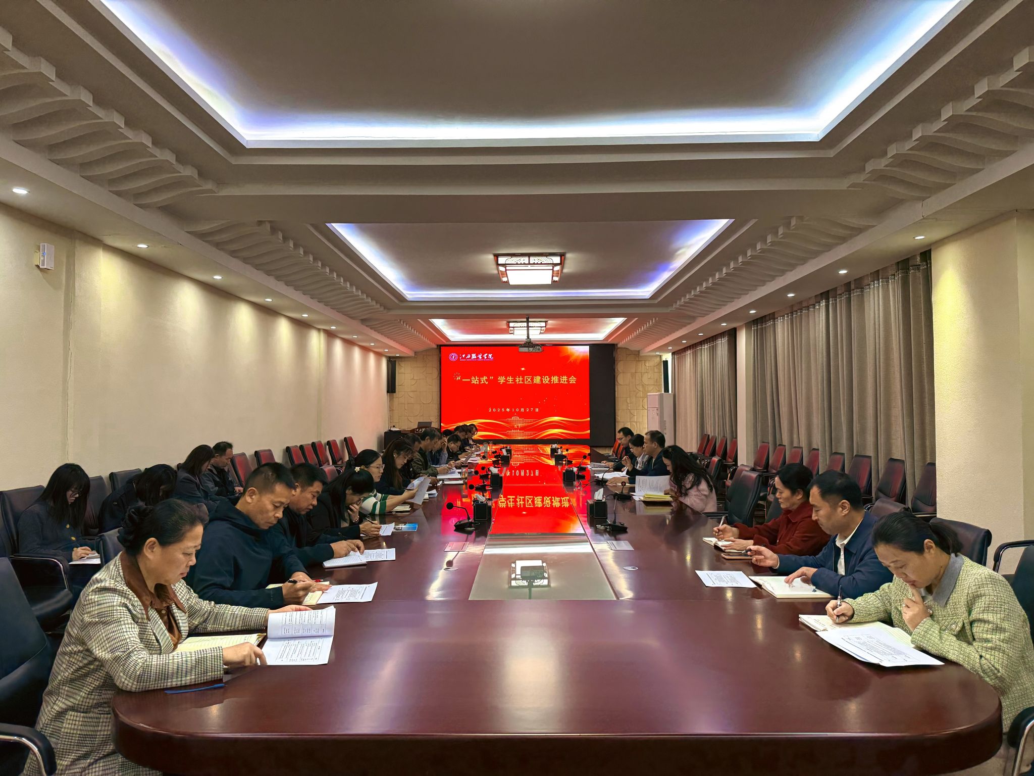 新闻中心讯(供稿/党委学生工作部)为落实教育部《高校“一站式”学生社区综合管理模式建设提质增效指南(2025修订版)》精神,系统总结新葡萄官网阶段性建设成效,破解发展难题,全面推进《8455新葡萄娱乐场官网版“一站式”学生社区提质增效建设实施方案》落地见效,10月27日,新葡萄官网在行政楼二楼会议室召开“一站式”学生社区建设推进会。校党委书记林井萍出席会议并讲话,相关职能部门负责人、各二级学院党委(党总支)书记、副书记参加会议。会议由校党委副书记唐新强主持。