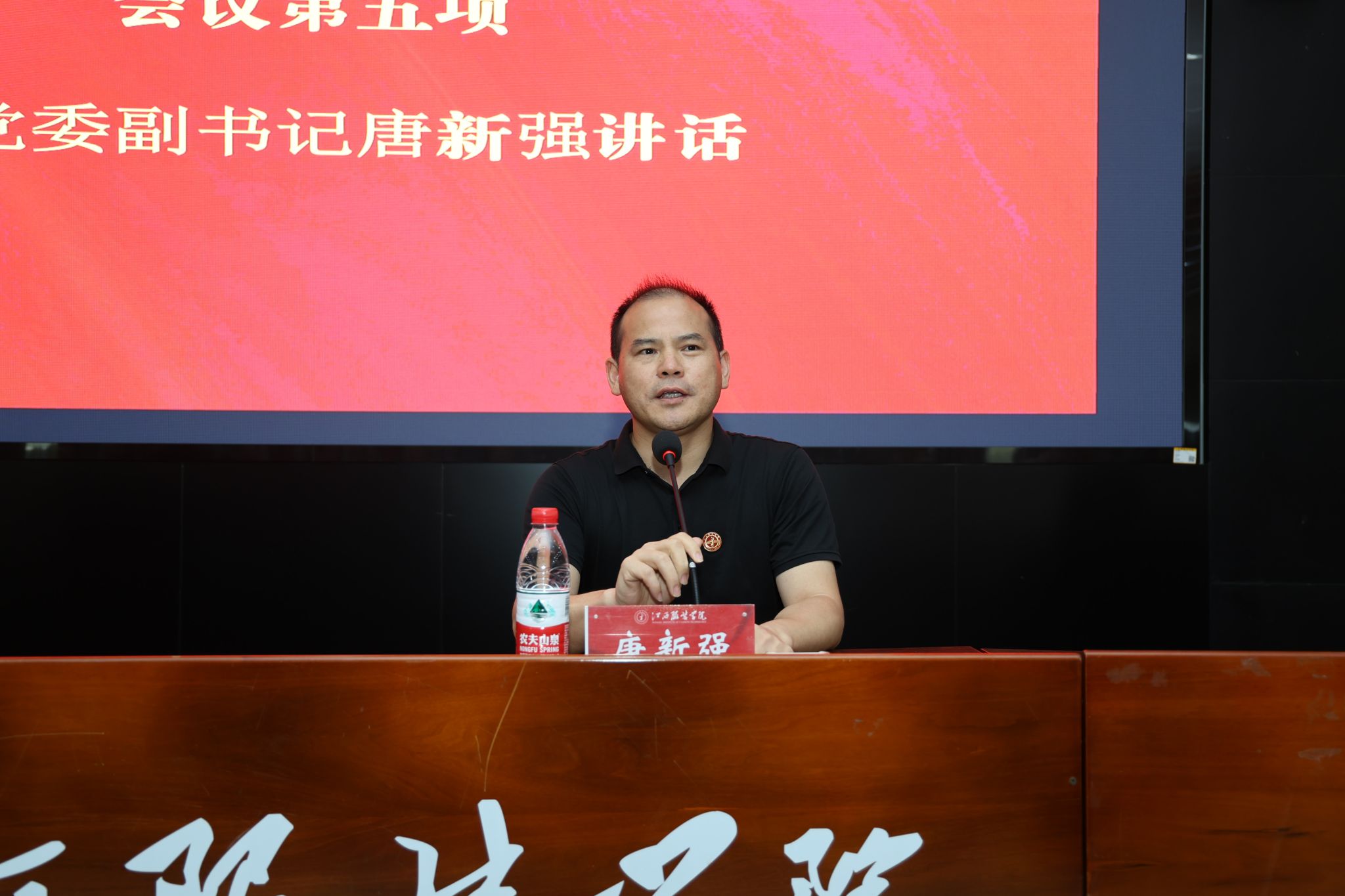 校党委副书记唐新强作总结讲话。他指出,2025年是中国人民抗日战争暨世界反法西斯战争胜利80周年,在这一具有特殊历史意义的时间,江服学子响应号召应征入伍,是对伟大抗战精神的传承,更是对强军梦、中国梦的接续奋斗,意义尤为重大。随后,唐新强从“赓续红色血脉、投身强军伟业、书写青春华章”三个方面对入伍学子提出了希望和要求。坚定听党话、跟党走,心怀家国情怀。要发挥人民子弟兵的优良传统,在部队大熔炉中磨炼成长,实现人生价值,为中国梦强军梦贡献青春力量。