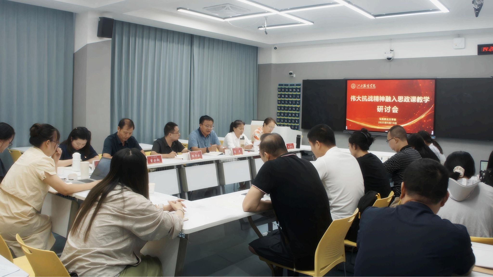 9月19日下午,马克思主义学院组织召开伟大抗战精神融入思政课教学研讨会。在交流研讨环节,魏园园等四位老师分享了将习近平总书记重要讲话精神、伟大抗战精神等融入思政课教学专题的方法、途径与手段,为与会教师提供了理论层面的思考与借鉴;课程展示环节,徐小年等四位老师进行了专题展示,从伟大抗战精神的核心要义、时代价值等方面入手,将习近平总书记重要讲话精神、伟大抗战精神巧妙融入教学内容,展现了生动的教学实践。
