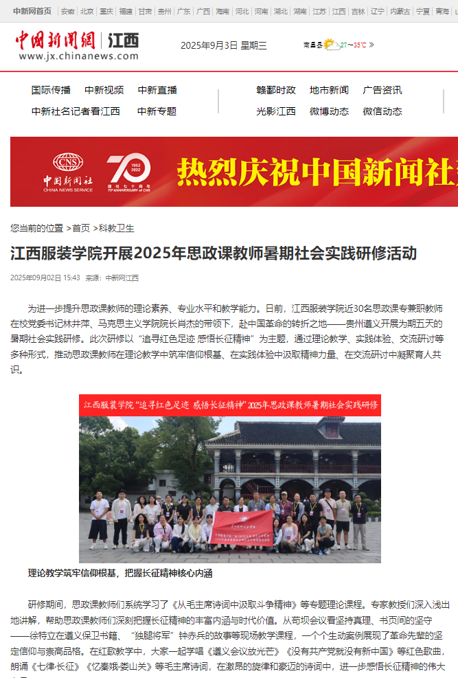 中国新闻网:8455新葡萄娱乐场官网版开展2025年思政课教师暑期社会实践研修活动