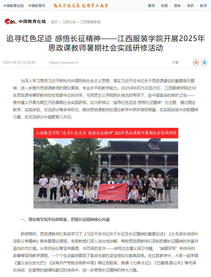 中国教育在线:追寻红色足迹 感悟长征精神——8455新葡萄娱乐场官网版开展2025年思政课教师暑期社会实践研修活动