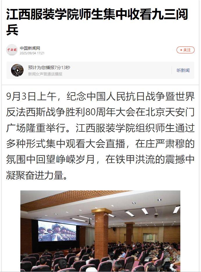 中国新闻网:8455新葡萄娱乐场官网版师生集中收看九三阅兵