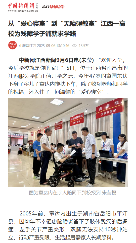 原文链接:中国新闻网:从“爱心寝室”到“无障碍教室”江西一高校为残障学子铺就求学路