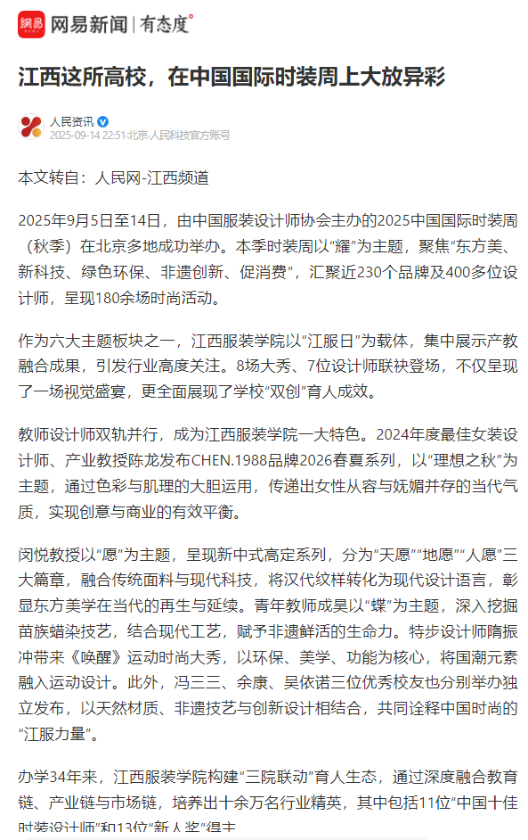 人民资讯:江西这所高校,在中国国际时装周上大放异彩