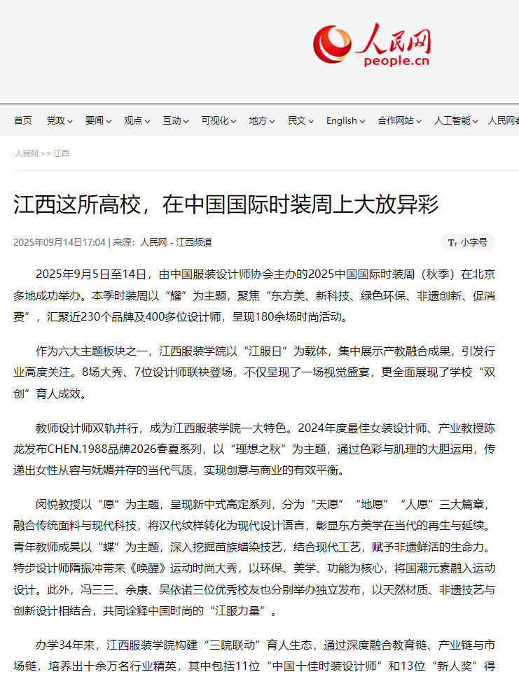 人民网:江西这所高校,在中国国际时装周上大放异彩