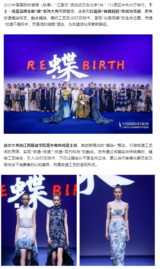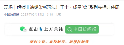 中国纺织报:现场|解锁非遗蜡染新玩法!干士・成昊“蝶”系列亮相时装周