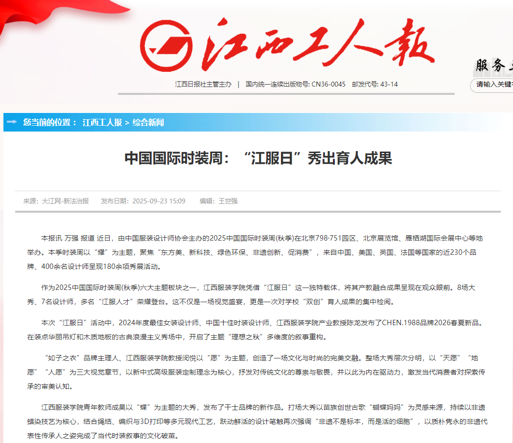 江西工人报:中国国际时装周:“江服日”秀出育人成果