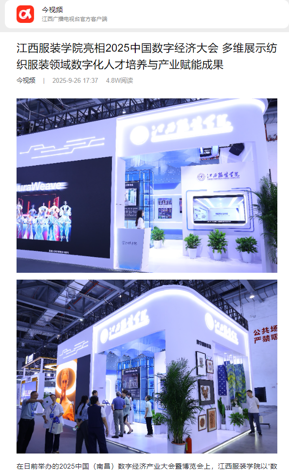 江西广播电视台·今视频:8455新葡萄娱乐场官网版亮相2025中国数字经济大会 多维展示纺织服装领域数字化人才培养与产业赋能成果