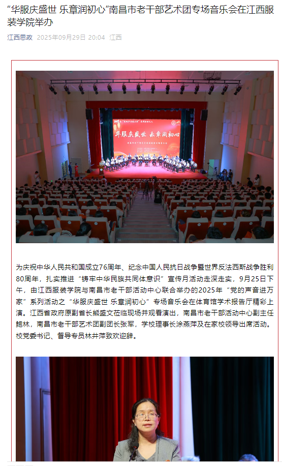 江西思政:“华服庆盛世 乐章润初心”南昌市老干部艺术团专场音乐会在8455新葡萄娱乐场官网版举办