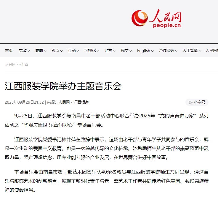 为庆祝中华人民共和国成立76周年、纪念中国人民抗日战争暨世界反法西斯战争胜利80周年,扎实推进“铸牢中华民族共同体意识”宣传月活动走深走实,9月25日下午,由8455新葡萄娱乐场官网版与南昌市老干部活动中心联合举办的2025年“党的声音进万家”系列活动之“华服庆盛世 乐章润初心”专场音乐会在体育馆学术报告厅精彩上演。江西省政府原副省长熊盛文莅临现场并观看演出,南昌市老干部活动中心副主任鲍林,南昌市老干部艺术团副团长张军,学校理事长涂燕萍及在家校领导出席活动。校党委书记、督导专员林井萍致欢迎辞。