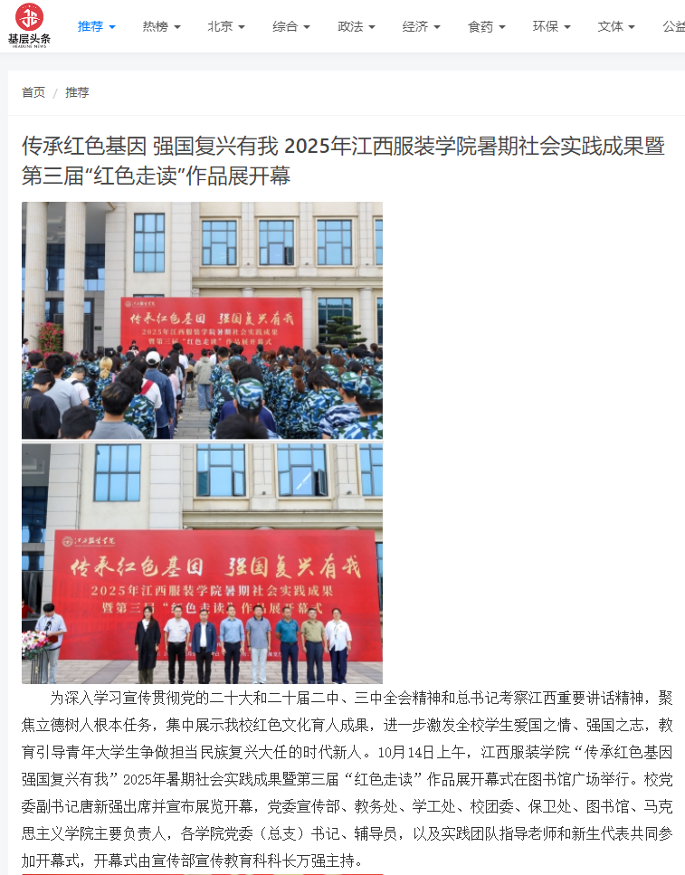 基层头条:传承红色基因 强国复兴有我 2025年8455新葡萄娱乐场官网版暑期社会实践成果暨第三届“红色走读”作品展开幕