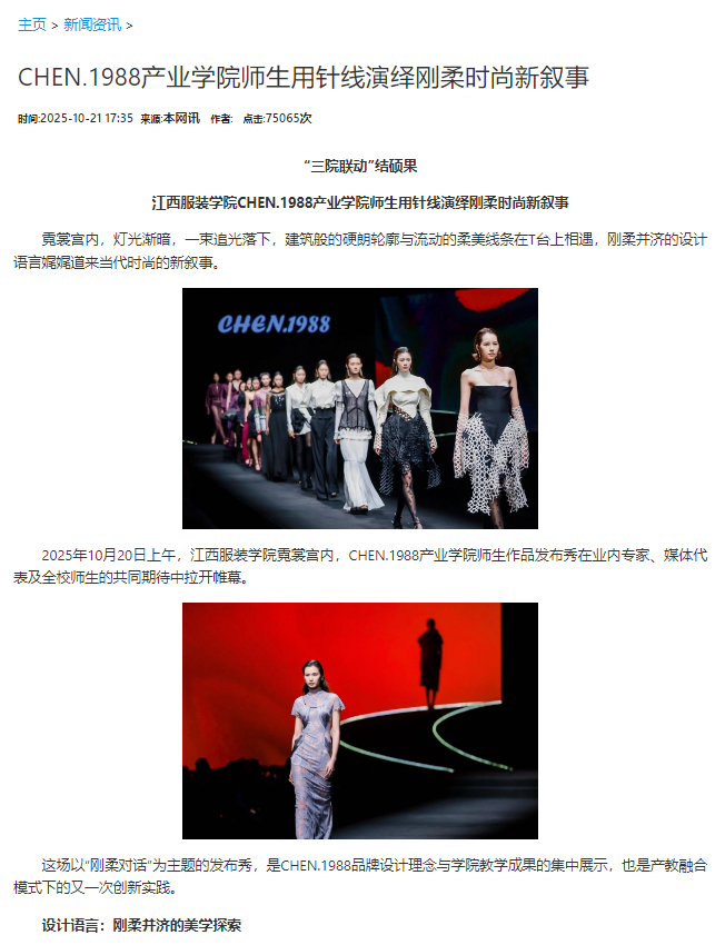 新华瞭望:CHEN.1988产业学院师生用针线演绎刚柔时尚新叙事