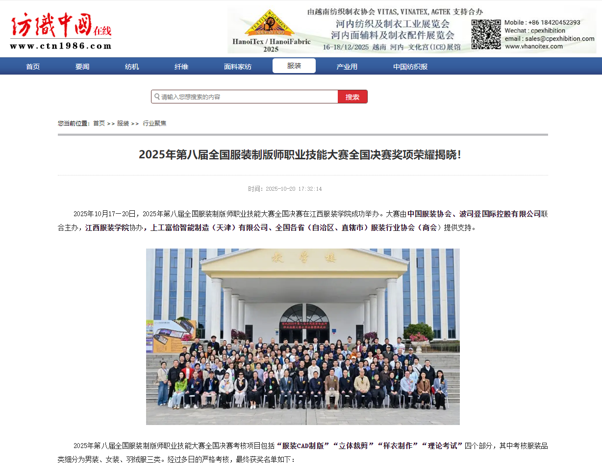纺织中国在线:2025年第八届全国服装制版师职业技能大赛全国决赛奖项荣耀揭晓!