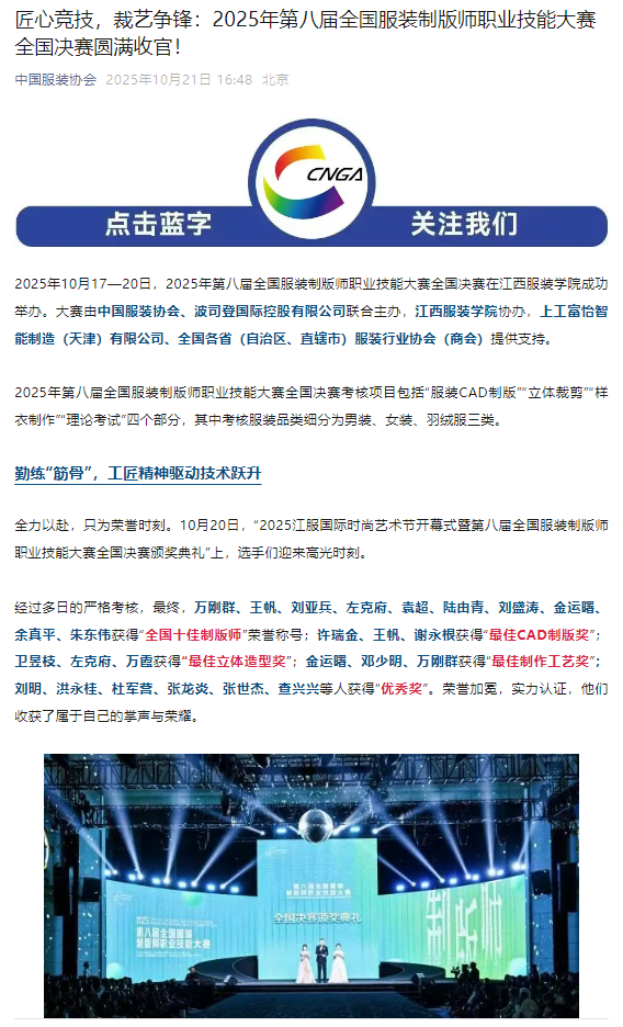 中国服装协会:匠心竞技,裁艺争锋:2025年第八届全国服装制版师职业技能大赛全国决赛圆满收官!