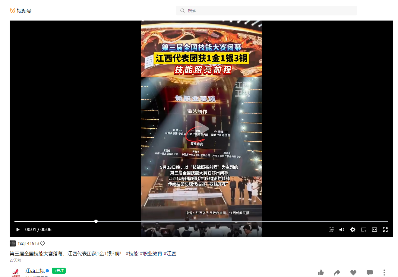 下一篇都市频道;江西选手在第三届全国技能大赛中摘1金1银3铜
