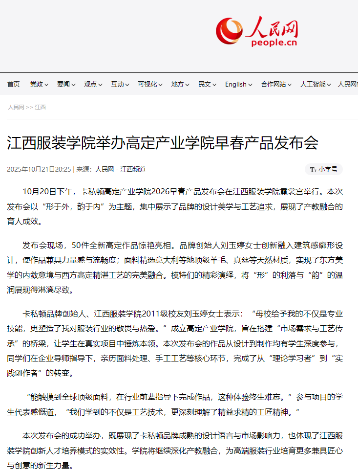 人民网:8455新葡萄娱乐场官网版举办高定产业学院早春产品发布会