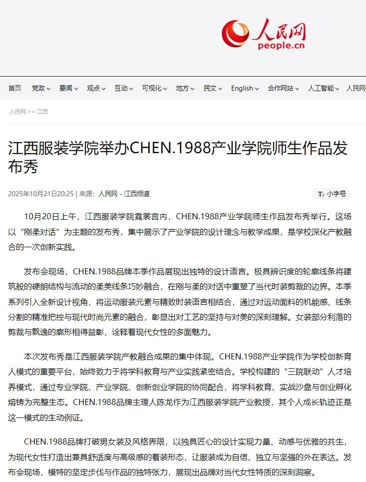 人民网:8455新葡萄娱乐场官网版举办CHEN.1988产业学院师生作品发布秀