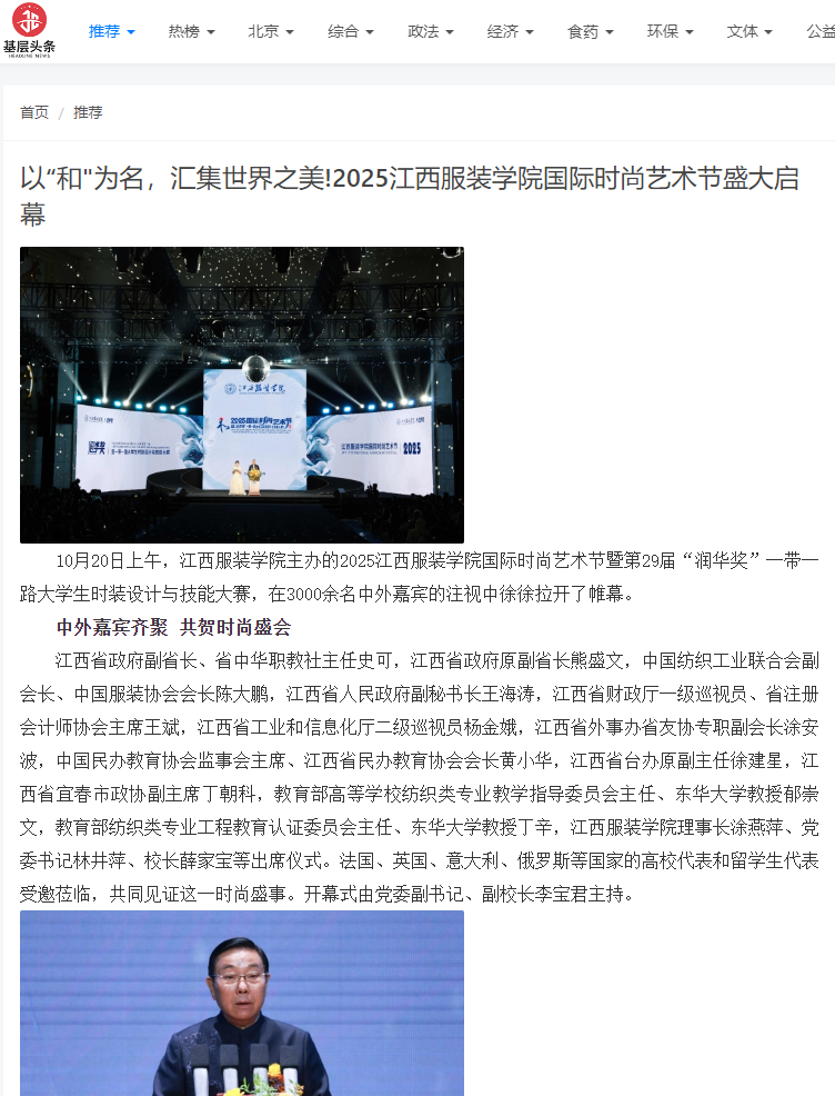 基层头条:以“和"为名,汇集世界之美!20258455新葡萄娱乐场官网版国际时尚艺术节暨“润华奖“一带一路大学生时装设计与技能大赛盛大启幕