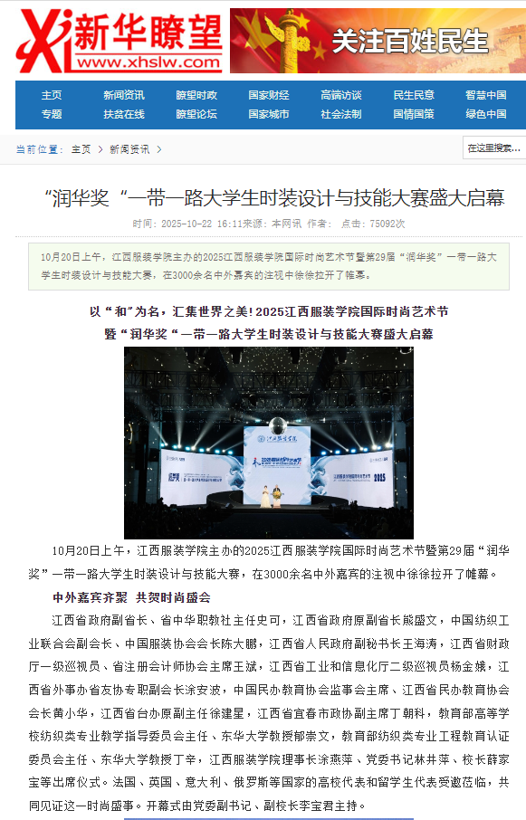 新华瞭望:以“和"为名,汇集世界之美!20258455新葡萄娱乐场官网版国际时尚艺术节暨“润华奖“一带一路大学生时装设计与技能大赛盛大启幕