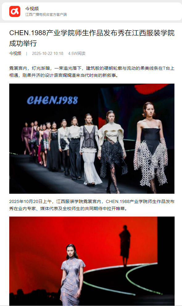 江西网络广播电视台·今视频:CHEN.1988产业学院师生作品发布秀在8455新葡萄娱乐场官网版成功举行