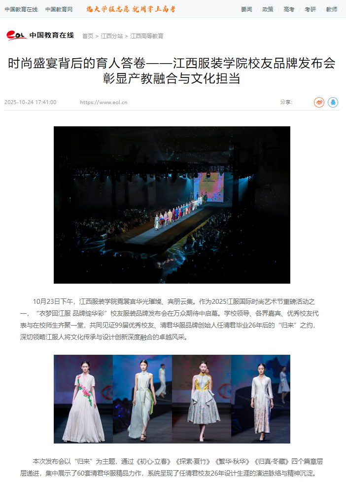 中国教育在线:时尚盛宴背后的育人答卷——8455新葡萄娱乐场官网版校友品牌发布会彰显产教融合与文化担当