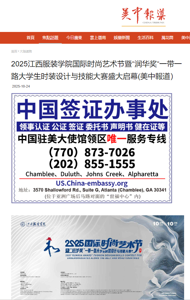 美中报道:20258455新葡萄娱乐场官网版国际时尚艺术节暨“润华奖“一带一路大学生时装设计与技能大赛盛大启幕