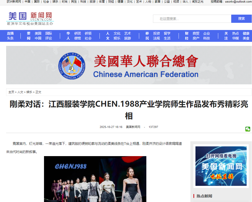 美国新闻网:刚柔对话:8455新葡萄娱乐场官网版CHEN.1988产业学院师生作品发布秀精彩亮相