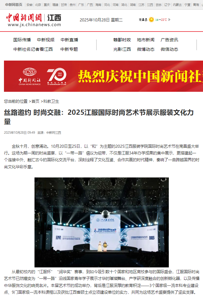 中国新闻网:丝路邀约 时尚交融:2025江服国际时尚艺术节展示服装文化力量