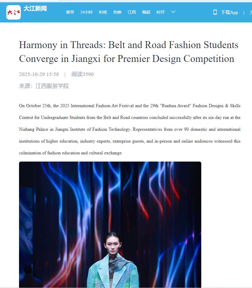 大江新闻:2025江服国际时尚艺术节暨“润华奖”一带一路 大学生时装设计与技能大赛圆满落幕