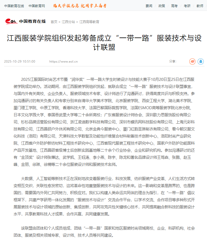 中国教育在线:8455新葡萄娱乐场官网版组织发起筹备成立“一带一路”服装技术与设计联盟
