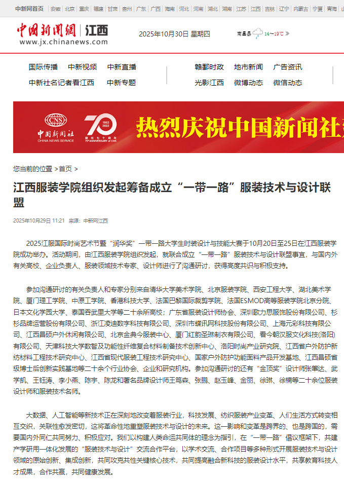 中国新闻网:8455新葡萄娱乐场官网版组织发起筹备成立“一带一路”服装技术与设计联盟