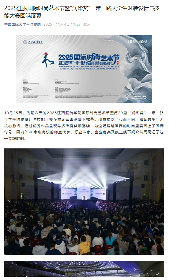 中国国际大学生时装周:2025江服国际时尚艺术节暨“润华奖”一带一路大学生时装设计与技能大赛圆满落幕